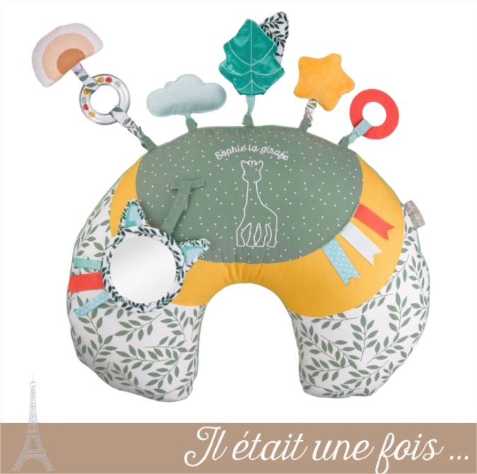 Възглавницата 2 в 1 на Софи Жирафчето се отличава със своята здравина и много активности за игра и почивка, които предлага на бебето! Това е възглавничка/играчка, която освен много красива е и много практична за бебето, което още от най-ранна възраст може да си почива с нея или да играе.