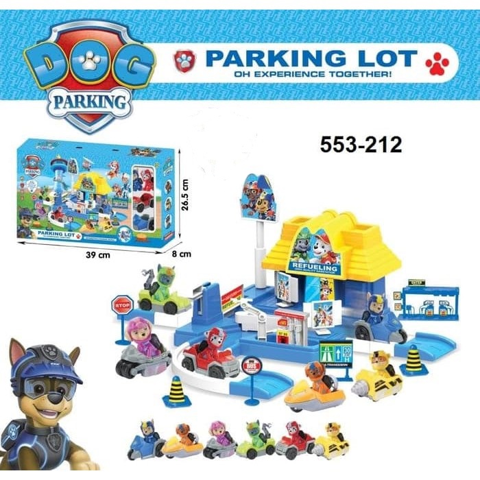 Комплектът включва : паркинг, 2бр фигури Пес Патрул и 2бр певозни средства !