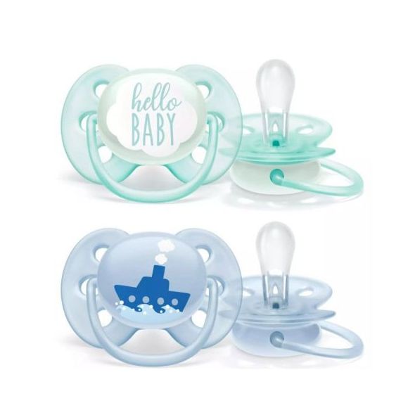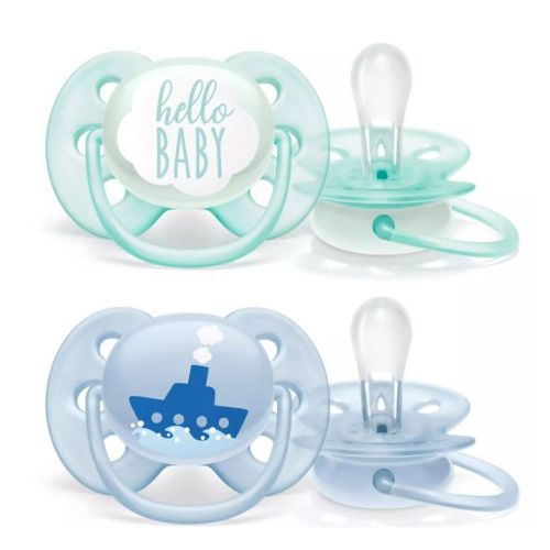 Силиконови залъгалки 2бр Avent 0-6м. Ultra Soft + кутия 0515.005 Лодка/Хелоу